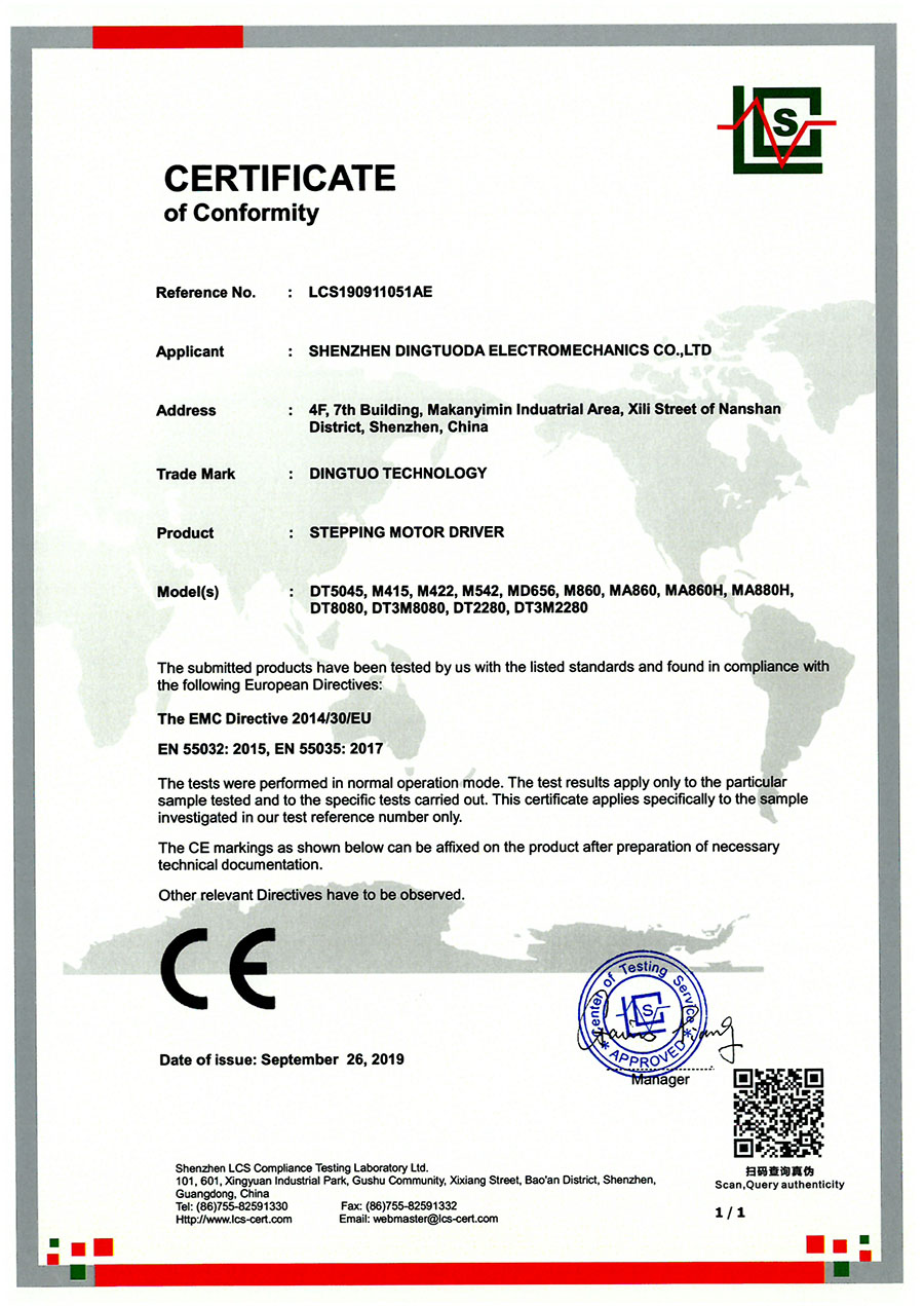 首頁(yè)->產(chǎn)品認(rèn)證->步進(jìn)驅(qū)動(dòng)器CE認(rèn)證證書