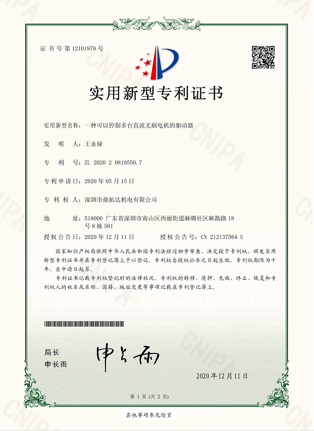 首頁->產(chǎn)品認證->一種可以控制多臺直流無刷電機的驅(qū)動器